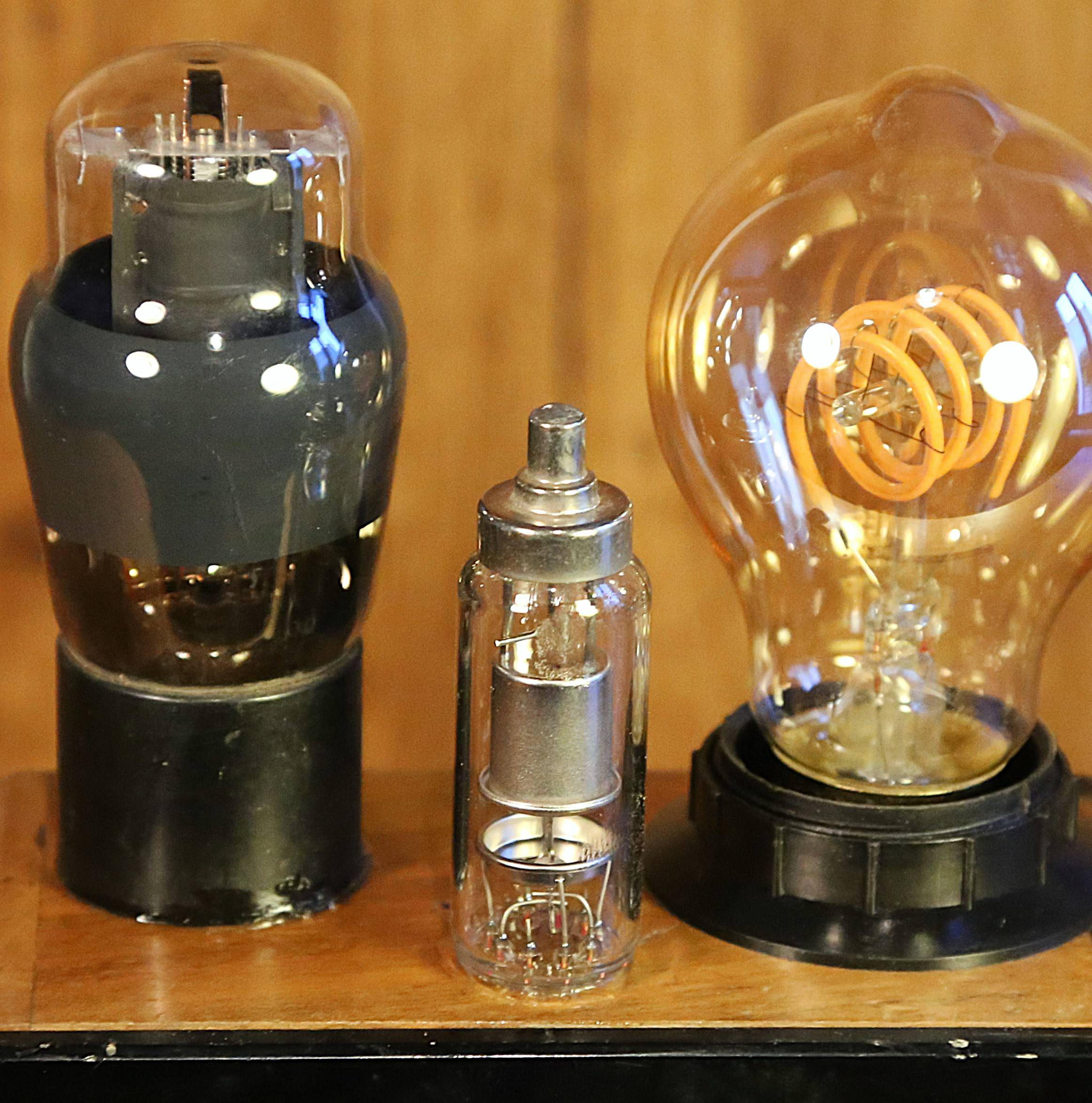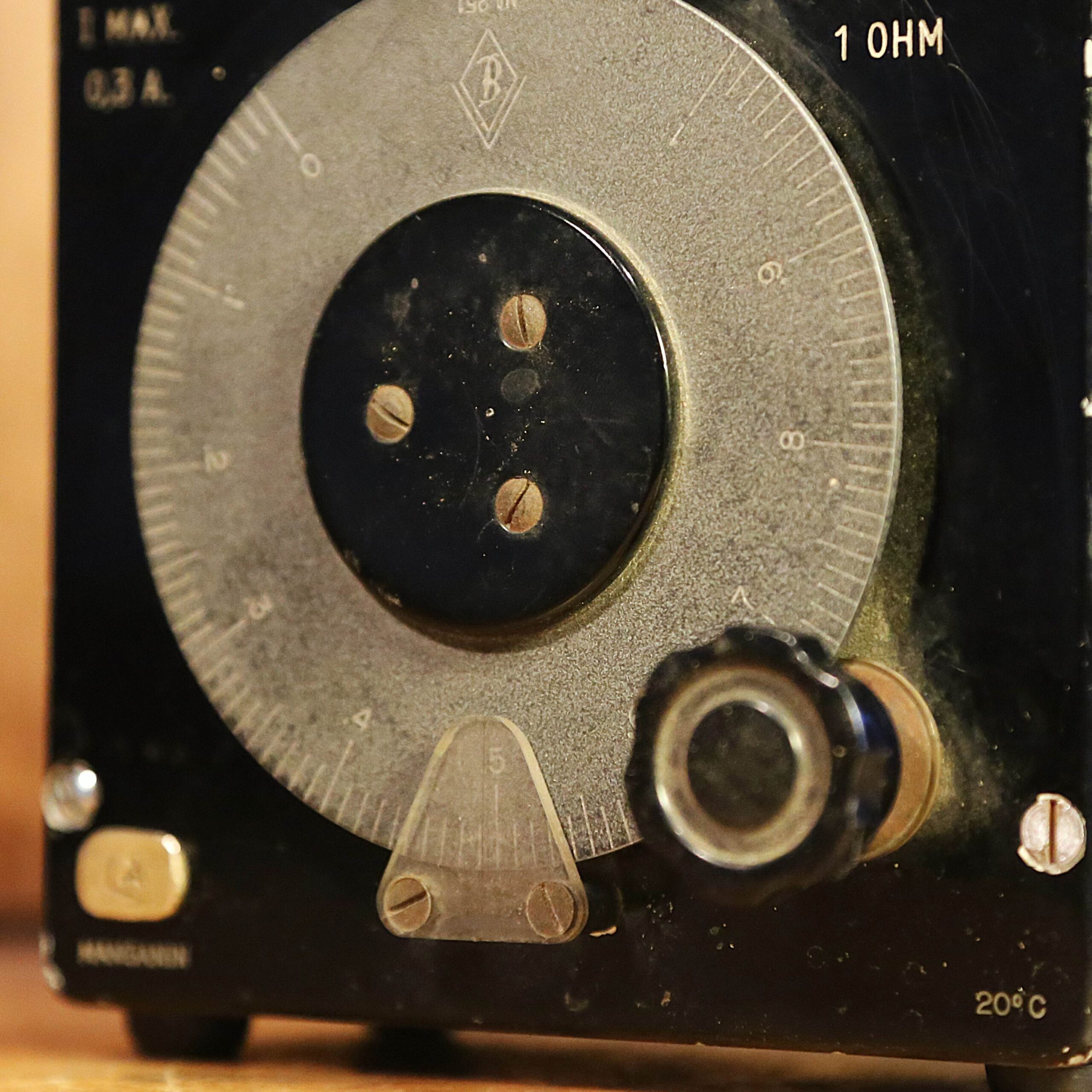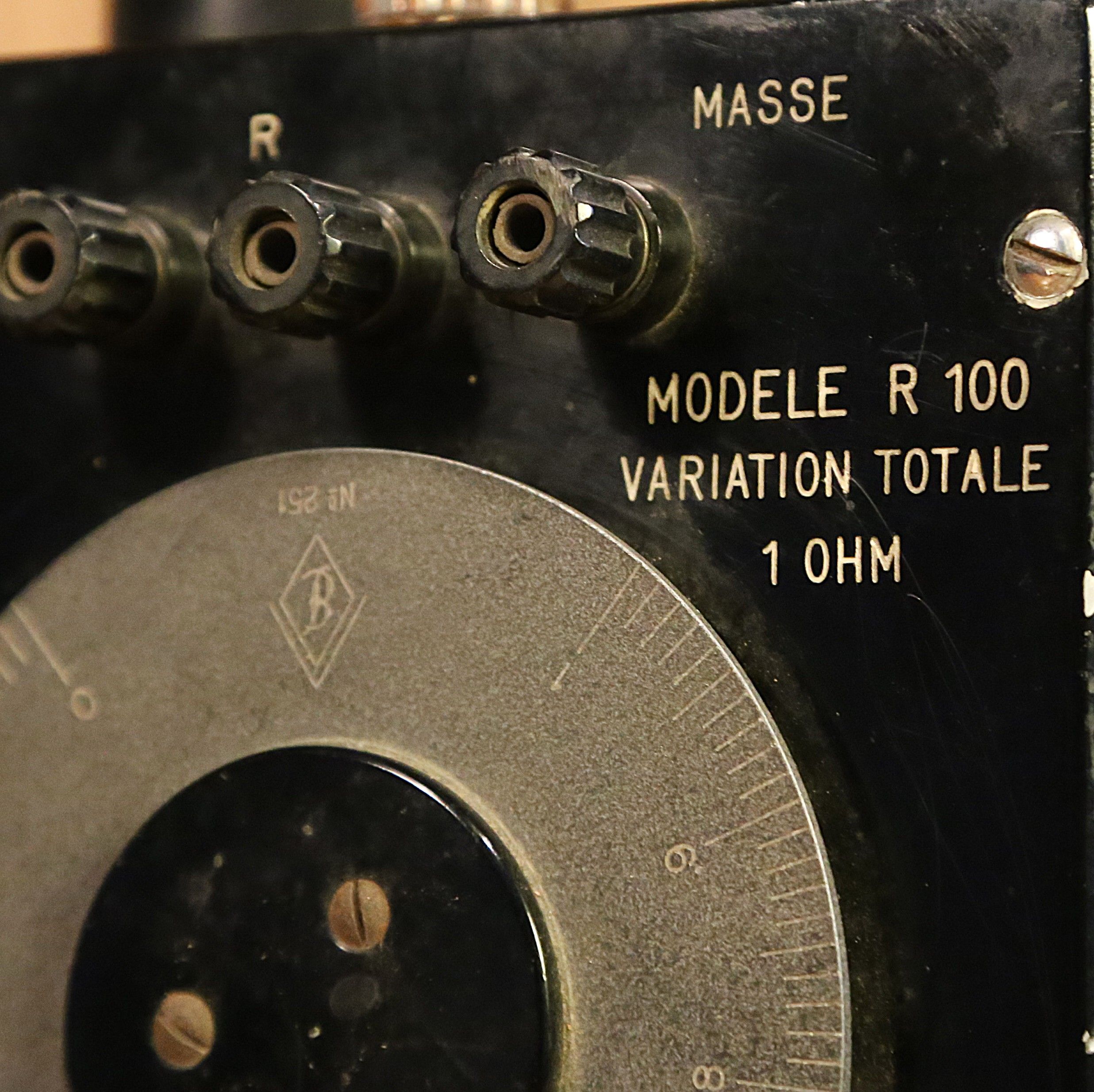 Création unique d’une lampe originale esprit Steampunk et rétrofuturiste à partir d’un instrument de mesure électrique vintage des années 30. En bakélite et en bois massif vernis, cet objet de collection est un ancien instrument qui permettait de mesurer la conductibilité d’un câble pu d’un fil, c’est à dire sa résistance, exprimée en Ohms. L’instrument est surmonté par deux lampes tube, un composant électrique, ancêtre du transistor, que l’on trouvait à l’intérieur des postes de radio ou de télévision, et dans les amplis. L’éclairage est assuré par une ampoule LED type Edison qui diffuse une lumière chaleureuse et un peu orangée.