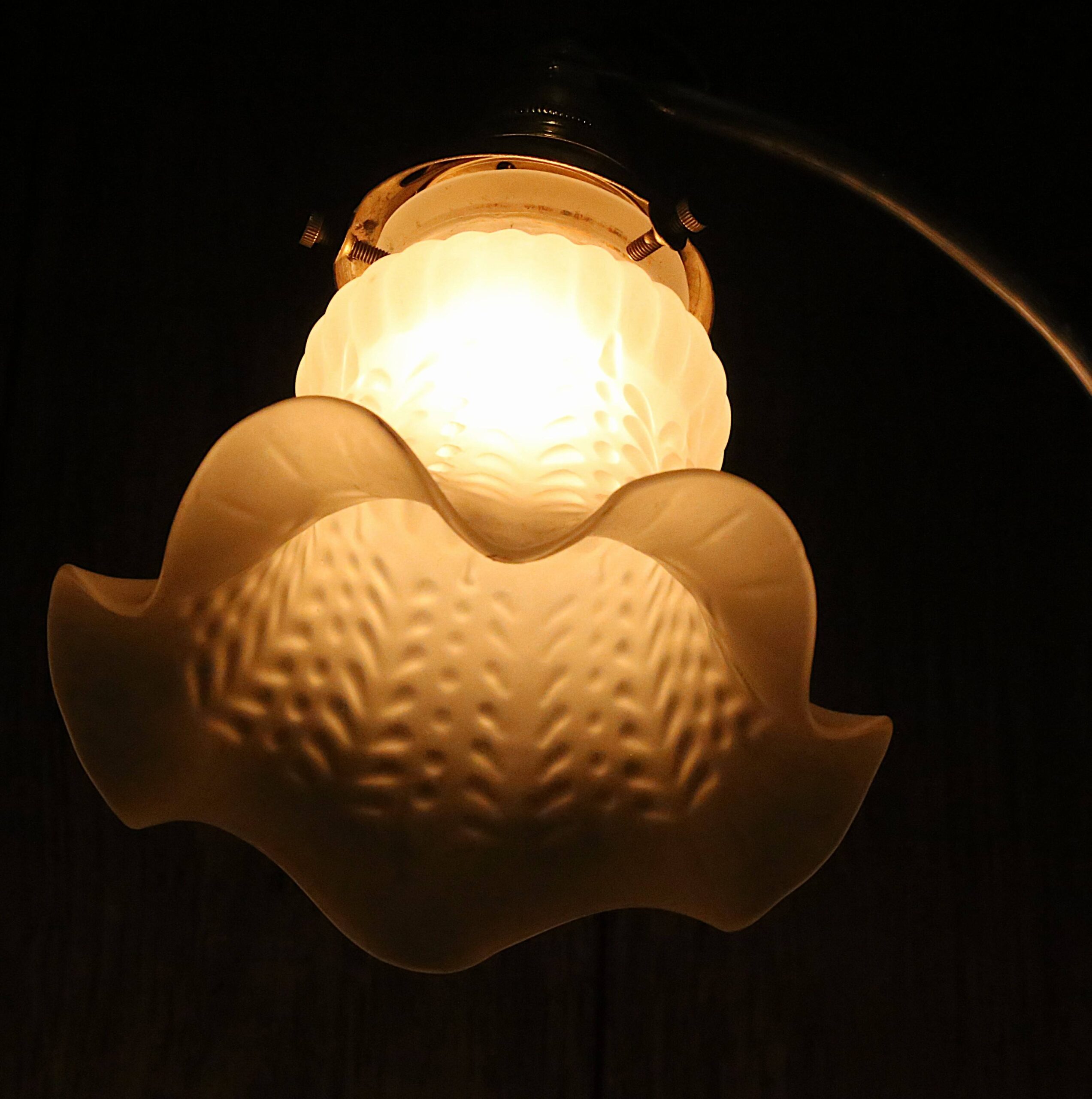 Inspiration Art Nouveau et Art déco pour cette lampe unique créée à partir d’un petit globe terrestre vintage. Le support de la mappemonde est constitué d’un assemblage de différentes pièces récupérées sur d’anciens bougeoir en laiton et d’un socle en vieux chêne massif joliment patiné par le temps.. Placée à l’extrémité d’un bras courbé en acier, le petit miroir parabolique provient d’un ancien projecteur de film. Orientable à souhait, il est là pour éclairer un peu plus certaines zones de notre terre, qui a bien besoin de Lumière en ce moment. Les courbes du grand bras, cintré à la main dans mon atelier, sont inspirées des formes végétales et tout en courbes du style Art Nouveau de la fin du 19 ème siècle. En pâte de verre et dans le style Art Nouveau, l’abat-jour en forme de tulipe vient apporter une douce lumière à notre terre. Une élégante et raffinée lampe qui inspire aux voyages et nous transporte à une autre époque.