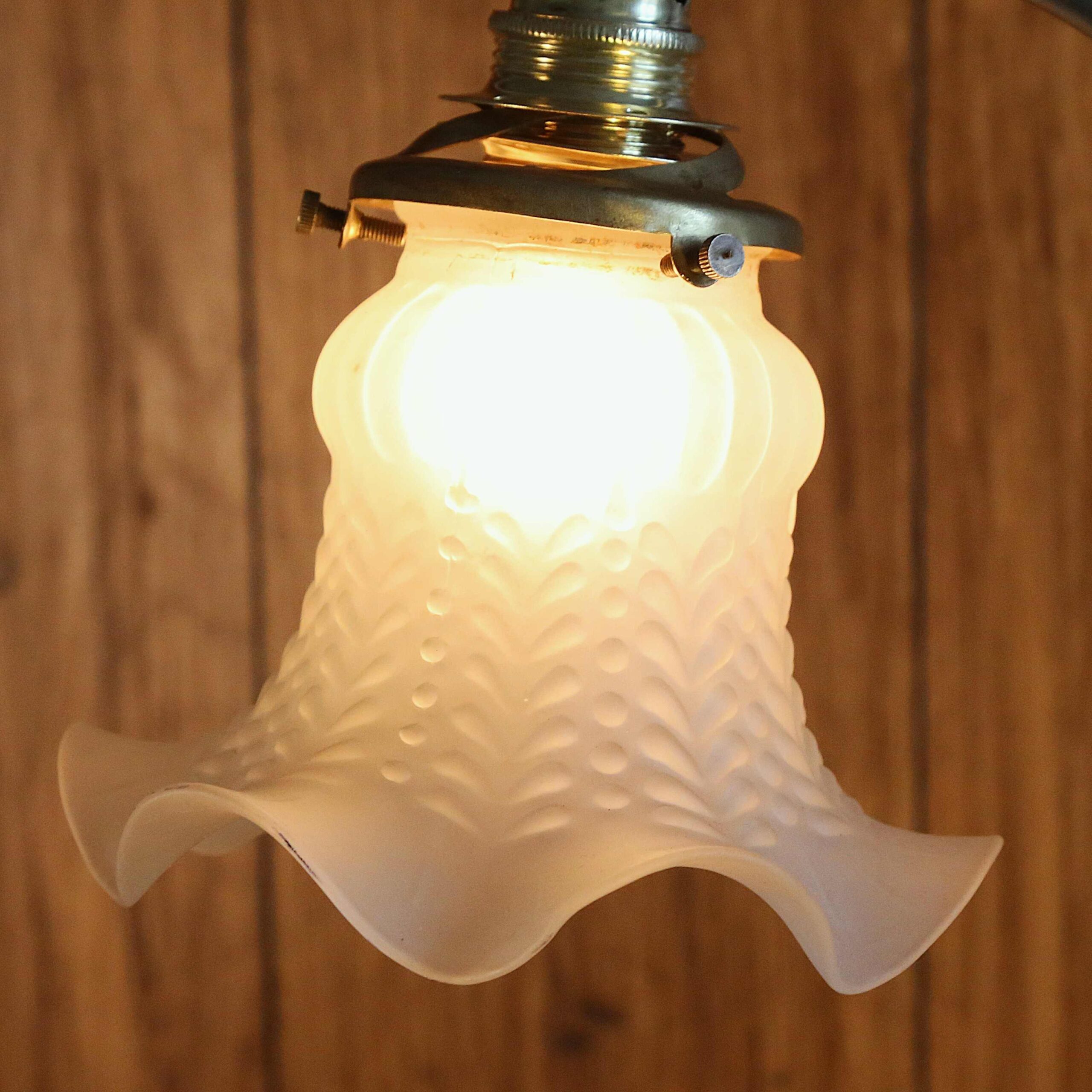 Matières : laiton, acier, bois massif, pâte de verre