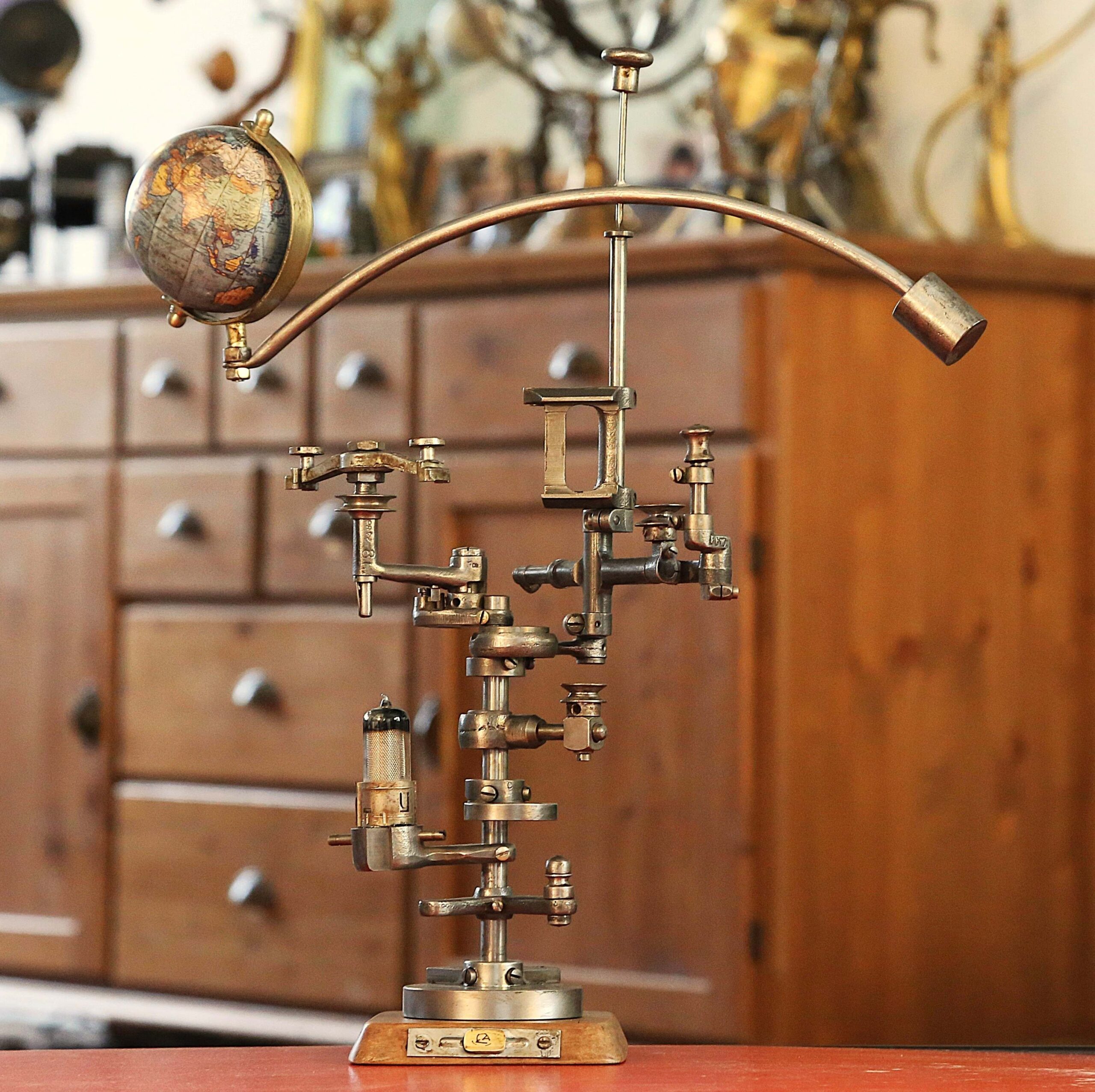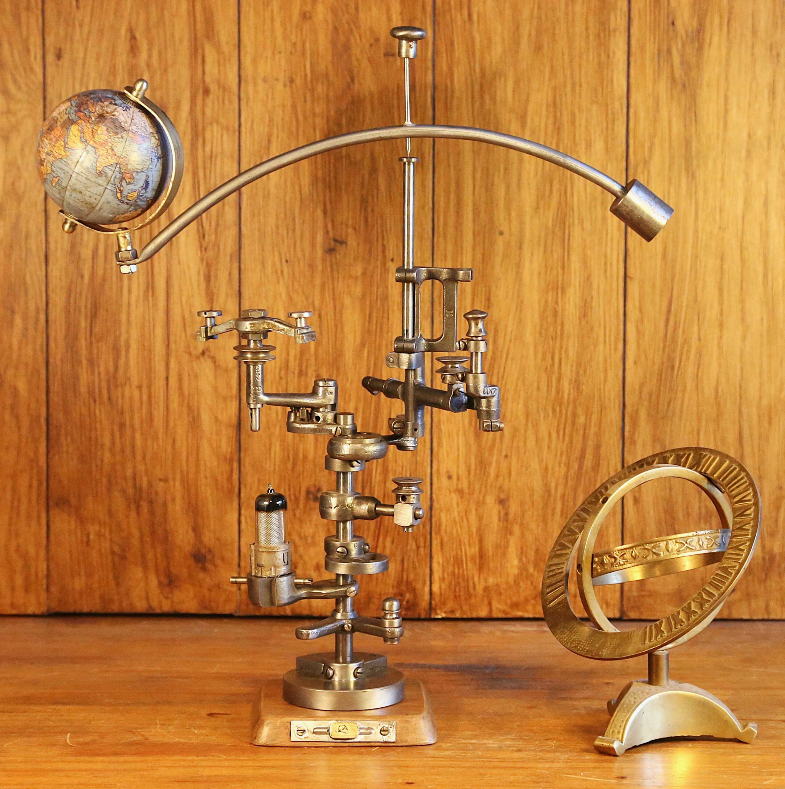 Livraison sculpture mobile décoratif globe et mécanismes métalliques Singer